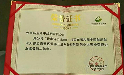 我司申報(bào)的“云南省干細(xì)胞庫(kù)”項(xiàng)目獲得由云南省科技廳授予的第三屆云南省創(chuàng)新創(chuàng)業(yè)大賽成長(zhǎng)組二等獎(jiǎng),最終成功晉級(jí)第六屆中國(guó)創(chuàng)新創(chuàng)業(yè)大賽生物醫(yī)藥行業(yè)總決賽。