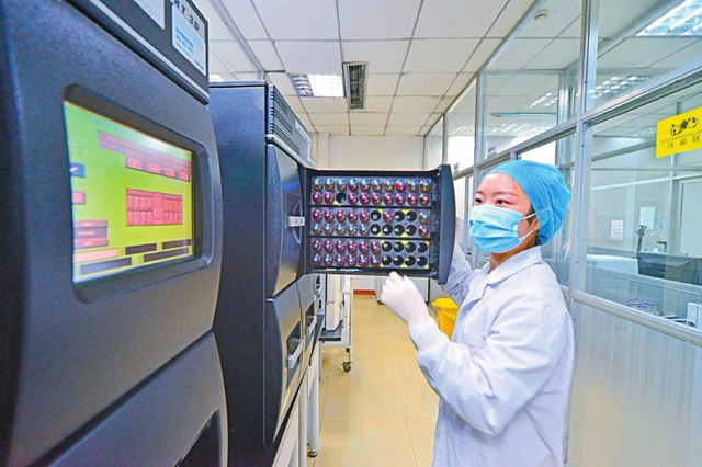 工作人員正在對干細胞進行微生培養(yǎng),每一份干細胞都要通過十余項質量檢測