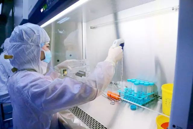 技術員進行干細胞傳代操作 整個過程都在GMP標準潔凈工作室中進行