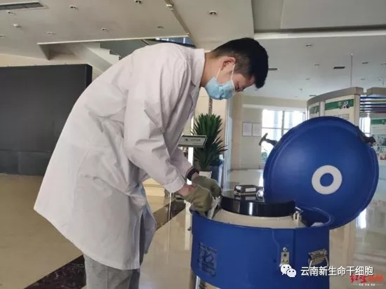 張盛和兒子見(jiàn)證臍帶血從庫(kù)中提取的過(guò)程