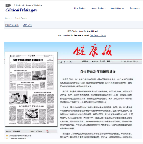 圍產(chǎn)期臍帶血干細(xì)胞的應(yīng)用研究也呈現(xiàn)突飛猛進(jìn)之勢(shì)。據(jù)美國(guó)臨床試驗(yàn)數(shù)據(jù)庫(ClinicalTrials.gov)的統(tǒng)計(jì),截至目前,全球正在開展的圍產(chǎn)期臍帶血臨床研究已超過1200項(xiàng),涉及腦癱、自閉癥、缺血性腦卒中、腦損傷、糖尿病等很多病種。顯而易見,當(dāng)圍產(chǎn)期臍帶血廣闊的應(yīng)用前景變成現(xiàn)實(shí)時(shí),擁有“種子細(xì)胞”的人群將率先享受到干細(xì)胞技術(shù)釋放的應(yīng)用紅利。