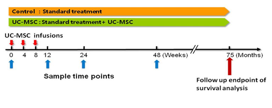 治療組每間隔4周輸注臍帶干細(xì)胞,共3次。同時,兩組都接受常規(guī)治療,并接受隨訪。此次研究結(jié)果不僅和此前一樣令人滿意,也證實了臍帶干細(xì)胞的長期效果。