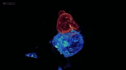 T細(xì)胞(綠)殺滅癌細(xì)胞(紅)