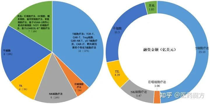 醫(yī)藥魔方Pharma Invest數(shù)據(jù)庫(kù)顯示,2021 H1全球細(xì)胞療法領(lǐng)域涉及融資約60起(包括IPO融資),總金額超73億美元,其中中國(guó)超20億美元。A輪融資數(shù)占比最高(28%)。所涉及的技術(shù),包括熱門(mén)的CAR-T、CAR-NKT等,也包括iPSC細(xì)胞療法。
