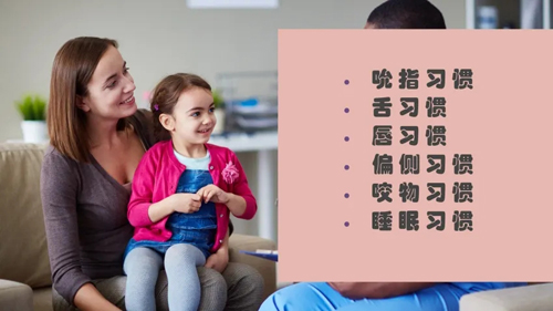 Q20:好的,首先我們看一下,常見(jiàn)的兒童口腔不良習(xí)慣會(huì)有哪些,我們把它總結(jié)為6類:1)吮指習(xí)慣;2)舌習(xí)慣;3)唇習(xí)慣;4)偏側(cè)咀嚼習(xí)慣;5)咬物習(xí)慣;6)睡眠習(xí)慣。